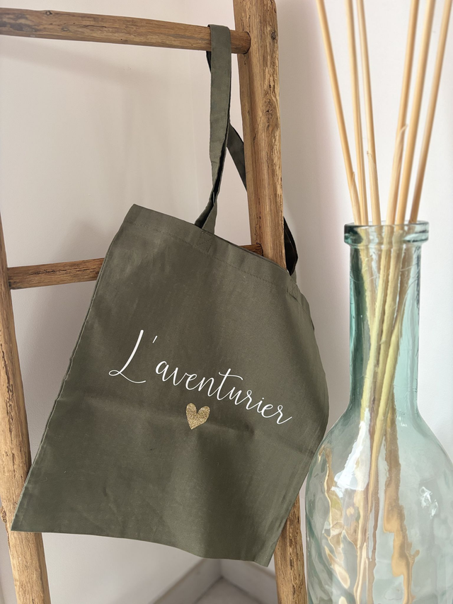 Tote-bag en coton de couleur "vert olive"