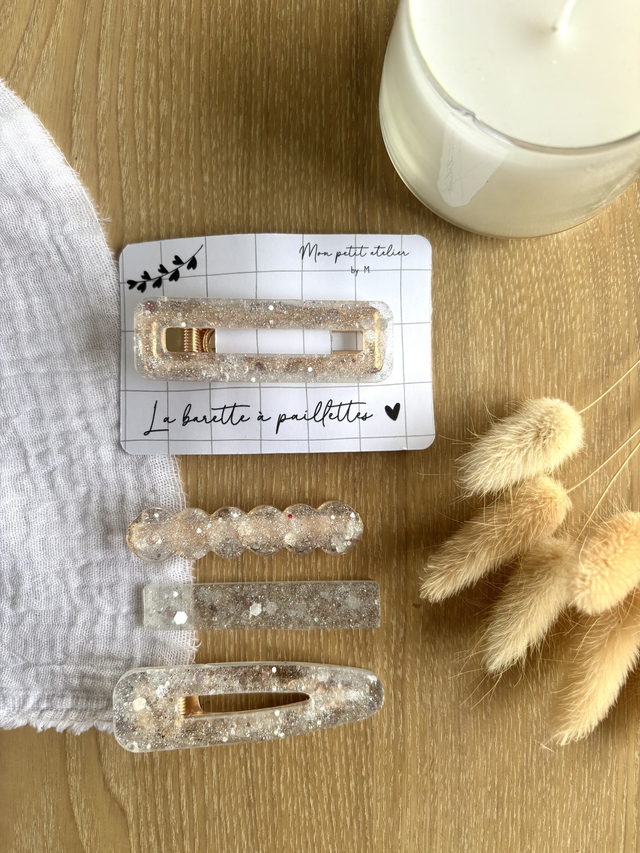 Chaque barrette est accompagnée d'un support "Ma barrette à paillettes".