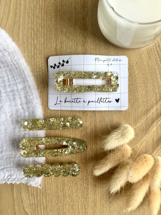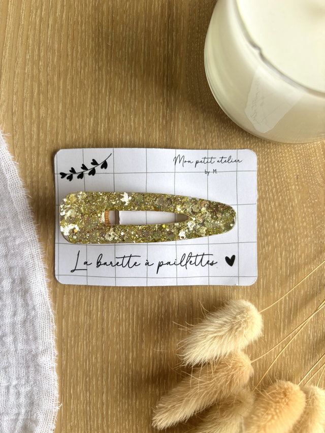 Chaque barrette est accompagnée d'un support "Ma barrette à paillettes".