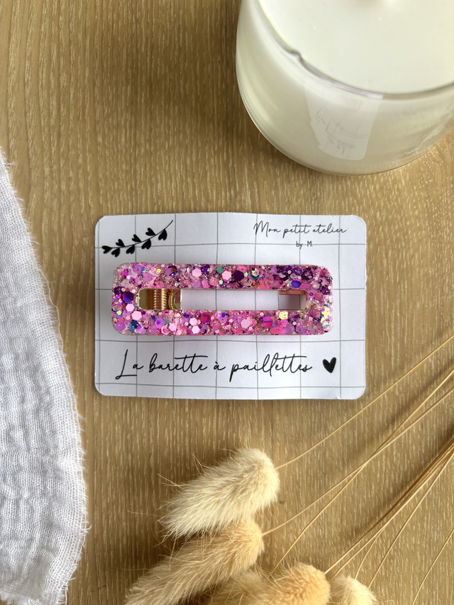 Chaque barrette est accompagnée d'un support "Ma barrette à paillettes".
