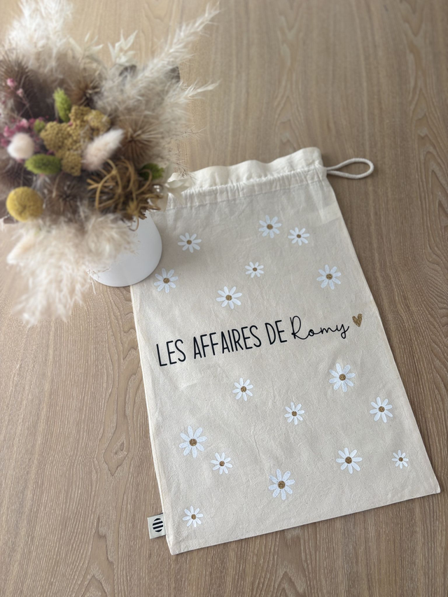 Pochon : sac en coton qui peut se fermer grâce à une cordelette.