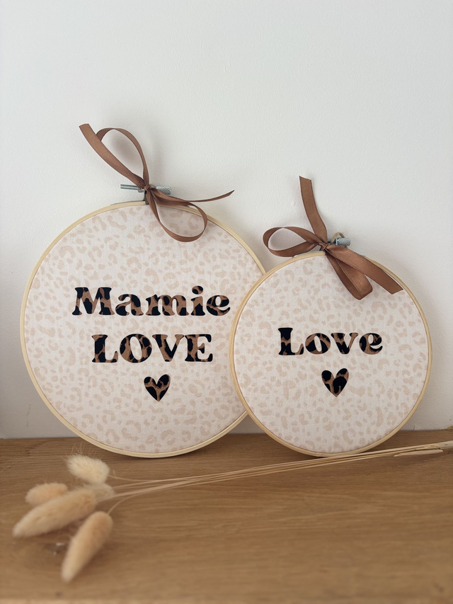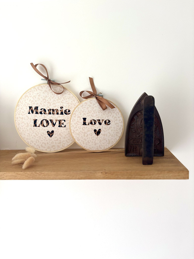 Tambour à broder de diamètre 15 cm (taille M) et 20 cm (taille L).