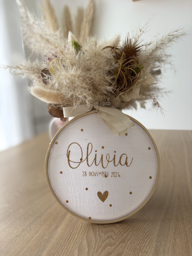Tambour à broder personnalisé et au choix entre les diamètres 10 cm, 15 cm et 20 cm.